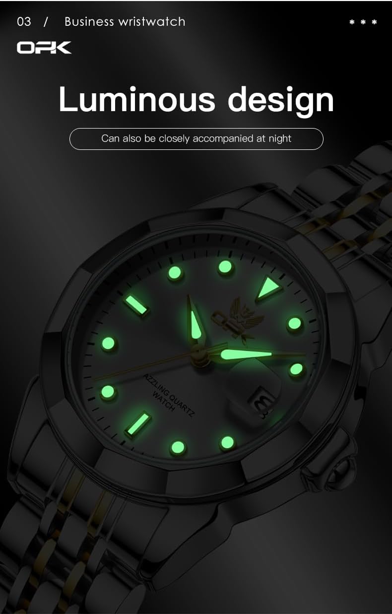 OPK Women Watch Bracelet Dress Easy to Read Stainless Steel Ladies Watches for Female Small Watch Waterproof Luminous Date Wacthes for Women